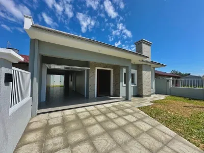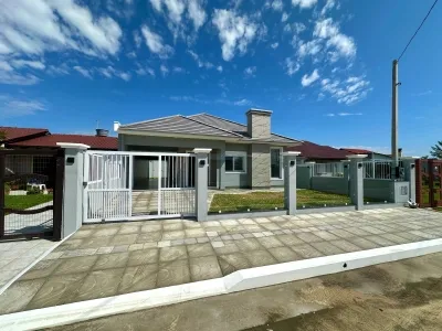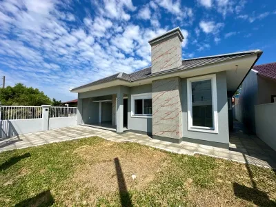 CASA DE ALTO PADRÃO A VENDA EM NOVA TRAMANDAÍ!!!! Terreno medindo 12x25m (300m²), Área construída de 142m², Imóvel composto por 3 dormitórios (sendo 1 suíte), Sala de estar , Sala de jantar, Cozinha, 3 banheiros (1 Suíte, 1 social e 1 lavabo), Pátio frente e fundos, Nova, nunca habitada, Acabamento de alta qualidade e excelente padrão construtivo, Próxima do mar, Área de serviço, Garagem para 2 carros, Churrasqueira, Água quente!! Agende já sua visita!!!